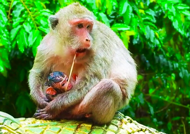 Most monkeys give birth to one baby at a time. The newborn is small, weak, and fully dependent on the mother.