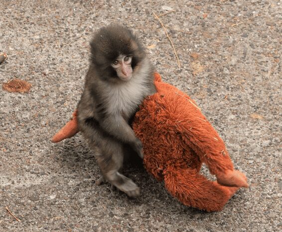 Punch’s plushie may not replace his real mom, but it gives him strength.